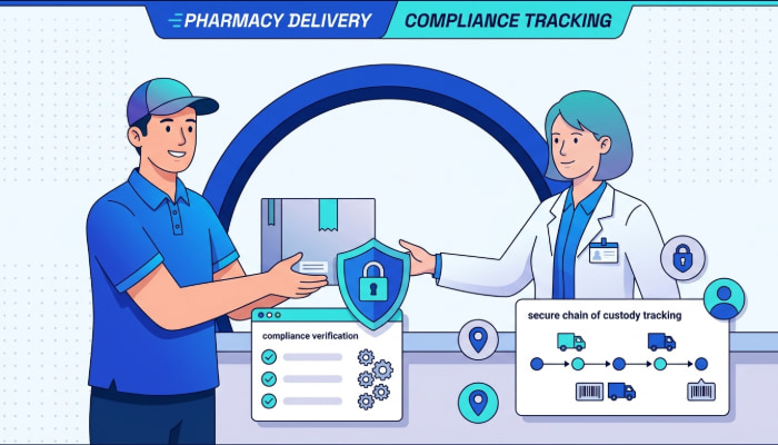 Pharmacies maintain chain of custody through a combination of barcode scanning at pickup, GPS tracking during transit, and proof of delivery capture at the destination. Each step creates a timestamped, verifiable record documenting who handled the package, where it was at each stage, and who received it. Digital proof of delivery with signatures and photos closes the chain at the final touchpoint.